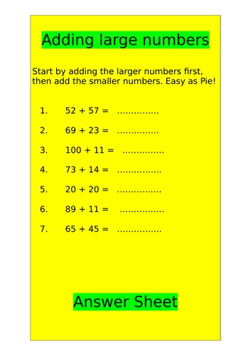 Adding Larger Numbers Teaching Resources