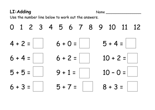 Y1 Adding Numbers Up To 12 Using Number Line Teaching Resources
